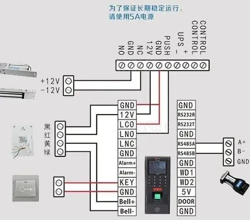 門禁系統接線詳細圖解-門禁指紋機(jī)人臉(liǎn)識别系統接線方法示意圖-指紋機(jī)人臉(liǎn)識别門禁系統接線圖-中德信通13554957908