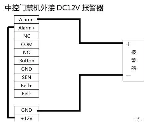 中控門禁機(jī)外接DC12V報(bào)警器接線圖