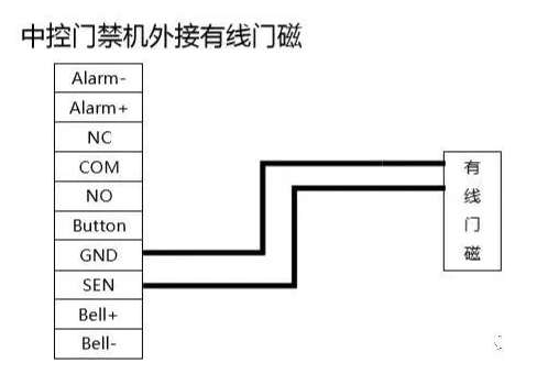 1、接線:中控門禁機(jī)的SEN(白色)和中控門禁機(jī)的GND(黑色)分别接在門磁的兩端,沒有正負(fù)之分。