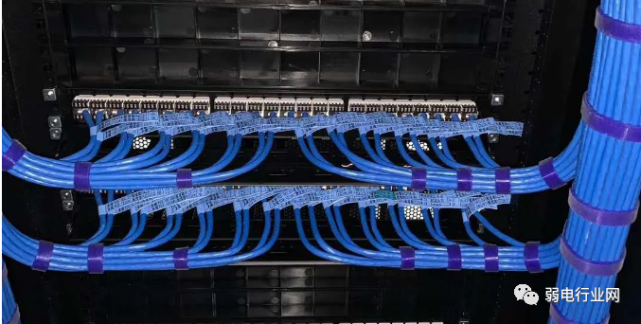 在配線箱處從配線櫃入口算起餘長爲配線櫃的(長+寬+深)。機櫃和理線槽,應該是井井有條。餘線應按分組表分組,從線槽出口捋直綁(bǎng)紮好,綁(bǎng)紮點間距不大於(yú)50cm。不可用鐵絲或硬電源線綁(bǎng)紮。50芯電纜轉彎半徑應不小於(yú)162mm。垂直電纜通過過線箱轉入垂直鋼管往下一層走線時,要在過線箱中綁(bǎng)紮懸挂,避免電纜重量全壓在彎角的裏側電纜上,這樣會影響電纜的傳輸特性。線槽内布放電纜應平直,無纏繞,無長短不一。