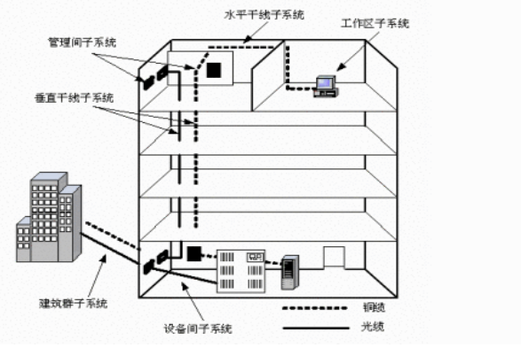 綜合布線系統又稱智能建築布線系統,該系統是一個由非屏蔽阻燃全系列産品組成的開放系統體系。它将辦公自動化、通信自動化、電力、消防等安保監控系統結合起來。布線系統採用模塊化設計,以實現靈活、管理方便、易於擴充、符合六類高标準布線系統。系統以可靠性、安全性、标準化及通用性、良好的擴展性爲原則,能夠支持現有各種網絡結構及協議,同時兼顧布線技術和網絡技術的發展,以滿足現代新技術的不斷發展綜合布線系統分爲建築物子系統、幹線子系統、配線子系統。每個子系統内都由配線架、幹線光纜或電纜、配線設備、設備線纜、信息插座等組成。子系統與子系統之間通過配線架由光纜進行連接。