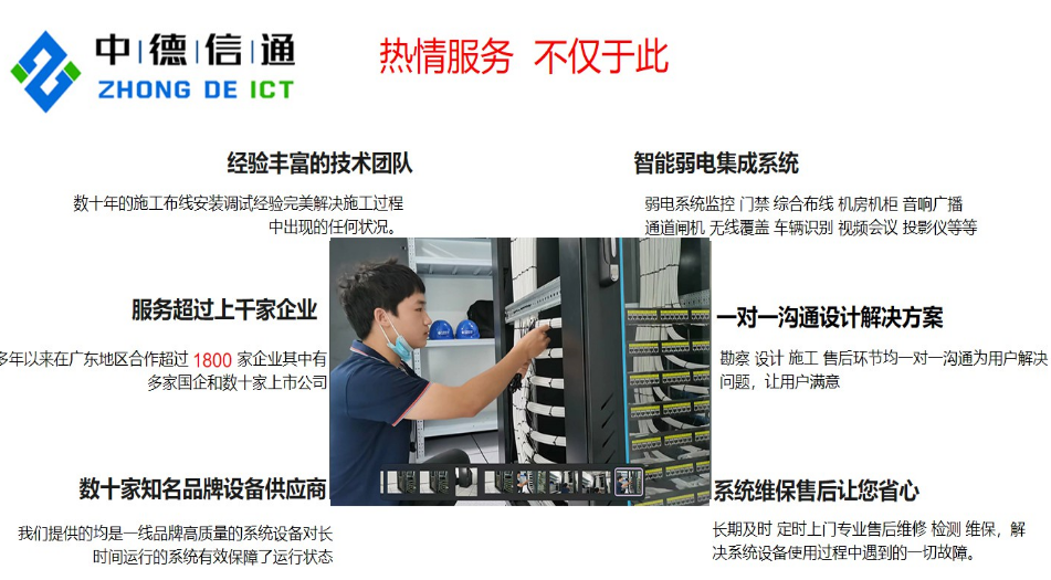 深圳安防監控弱電工程公司系統集成從事音視頻系統工程的設計、安裝、調試和産品,與多家連鎖酒店和超市達成合作夥伴關系,爲其提供安防弱電系統服務。完成瞭(le)各種工程案例,有著(zhe)豐富的大中型項目施工經驗,可提供免費到現場勘測,根據現場的情況報出詳細的價格清單。