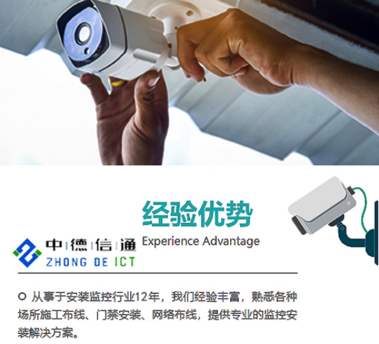 中德信通是一家專注於安防監控、機房建設、網絡布線以及綜合安防監控設計勘察施工維修維護公司。我們提供全方位的監控安裝服務,包括攝像頭安裝及維修等服務。