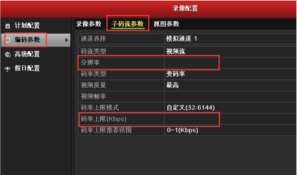 NVR本地訪問,如果是小畫面顯示資源不足,請到錄像配置—編(biān)碼參(cān)數—子碼流參(cān)數,将子碼流的分辨率和碼流上限降低,一般子碼流的碼率上限建議降低到512k, 分辨率建議在CIF 模式。