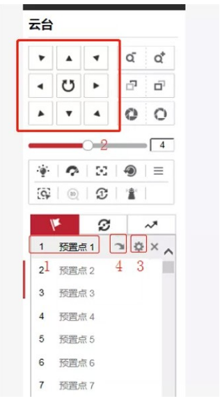 ①選中要設(shè)置的預置點(diǎn)的數字,如預置點(diǎn)1;