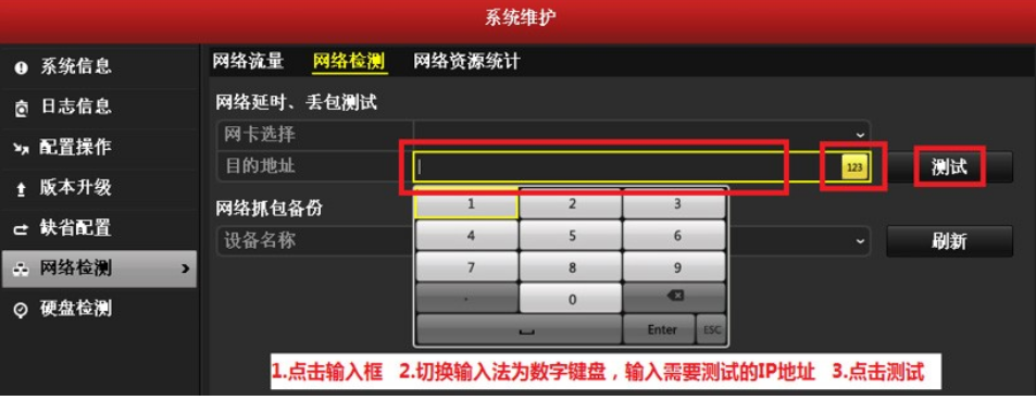 ② 在系統維護-網絡檢測(cè)-網絡檢測(cè)-目的地址欄中,輸入路由器的IP地址,點擊測(cè)試,若提示“目的地址不可達”,請檢查設備(bèi)與路由器之間的線路連接,以及IP是否與路由器同網段;若提示“延時XXX,丢包XXX”;可以再在目的地址輸入外網IP地址測(cè)試,如輸入百度IP:202.108.22.5 測(cè)試查看是否外網正常連接。