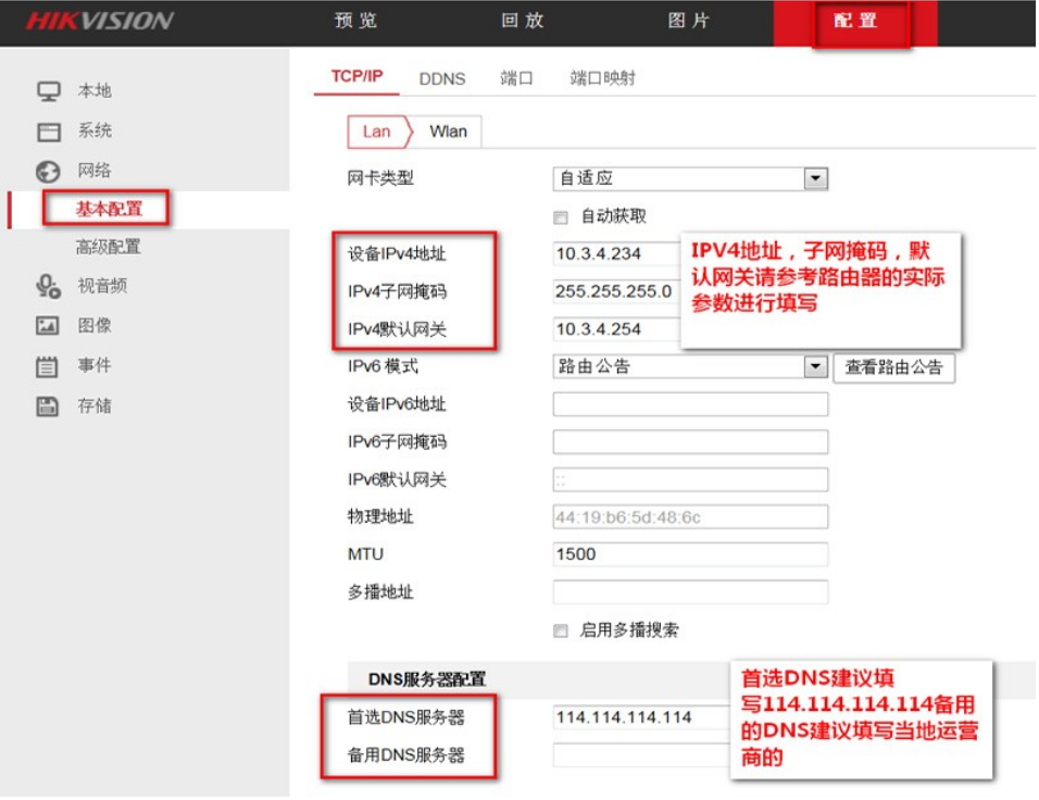 2. 點擊網絡配置—基本配置, 将IPV4地址設置成與路由器同網段的IP地址,子網掩碼(255.255.255.0),默認網關填成路由器的地址,首選DNS地址填寫成114.114.114.114,備(bèi)用可填寫當(dāng)地運營商的DNS地址;MTU的數值降低到1300。點擊應用。