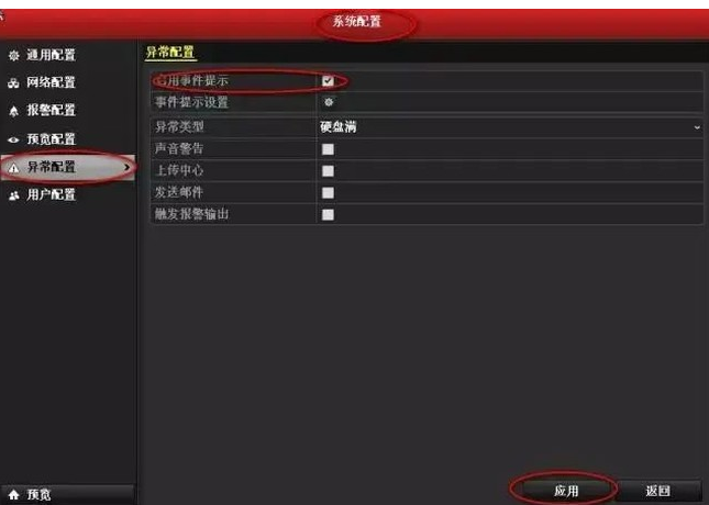 如果要取消這個(gè)提示,進入主菜單(dān)-系統配置,異常配置,将啓用事件提示的鈎取消掉,應用。