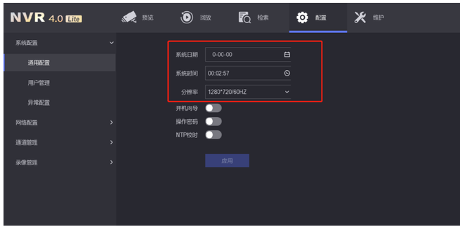 配置-系統配置-通用配置,修改系統日期和時(shí)間(jiān),應用。