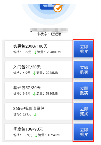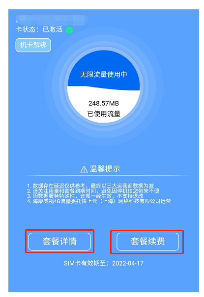 點(diǎn)擊用戶中心-流量服務-綁(bǎng)定物聯卡ICCID-綁(bǎng)定成功會顯示已激活-點(diǎn)擊對應卡-套餐續費