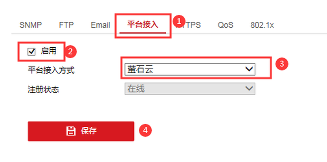 方法:通過IE浏覽器登錄設備(bèi)的IP地址,進入配置-網絡-高級配置-平台接入界面查看,啓用螢石雲需要打鈎(gōu)。