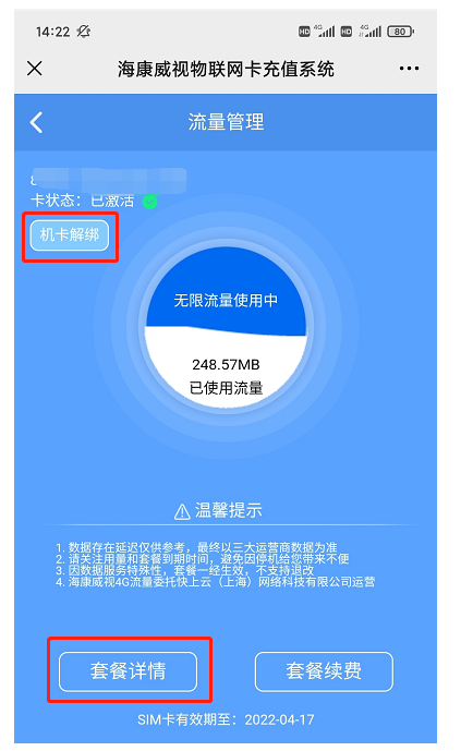 解綁(bǎng)操作:使用“物聯流量服務商”微信公衆号或海康互聯APP進(jìn)行解綁(bǎng)操作。