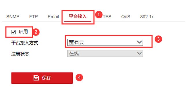 方法:通過IE浏覽器登錄設備(bèi)的IP地址,進入配置-網絡-高級配置-平台接入界面查看,啓用螢石雲需要打鈎(gōu)。