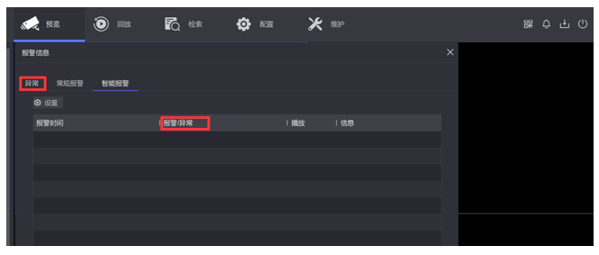 點(diǎn)擊右上角“小鈴铛”标志,查看“異常“中的具體“報(bào)警/異常”事件
