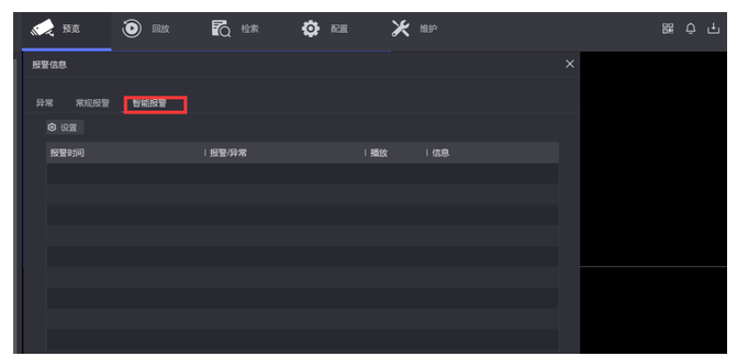 點(diǎn)擊右上角“小鈴铛”标志,查看智能報(bào)警中的報(bào)警事件