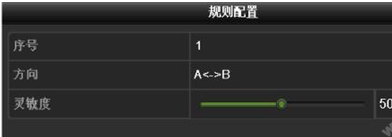 3、設置越界偵測(cè)規則,在規則下拉列表中,選擇任一規則。單(dān)擊“規則配置”, 設置規則的方向和靈敏度。