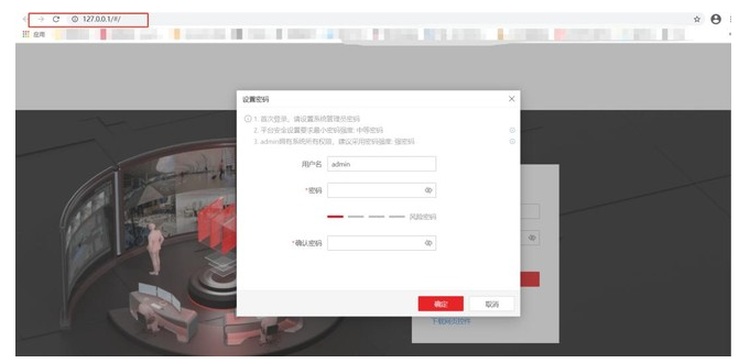 首次登入需要創(chuàng)建用戶(hù)名和密碼,用戶(hù)名默認admin,密碼根據您自己需求設置。