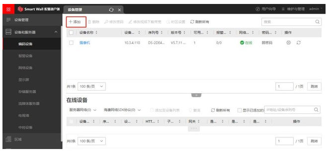 鼠标移動到左上角,點擊設備(bèi)管理-編(biān)碼設備(bèi),點擊添加,根據提示輸入設備(bèi)IP地址,用戶名和密碼,設備(bèi)端口8000,點擊添加。