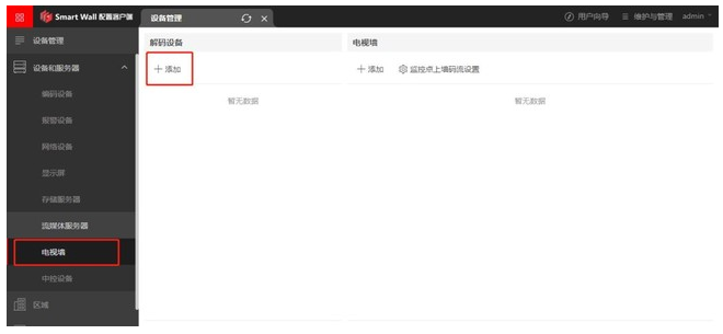 3、點(diǎn)擊電(diàn)視牆,添加解碼器