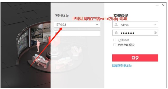 1、打開桌面應用軟件Smart Wall客戶端,首次登錄需要填寫服務器地址(Smart Wall網(wǎng)頁端登錄(lù)IP地址),端口80,用戶名、密碼(網頁端創建的賬号密碼)。