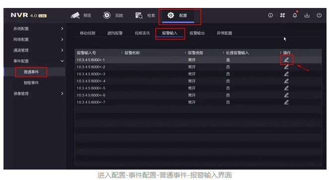 1.選擇對應的報(bào)警輸入号,點(diǎn)“操作”進入配置界面。