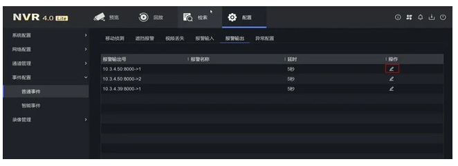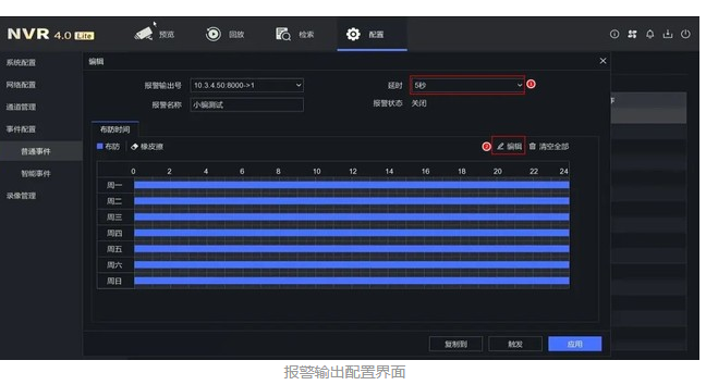 進(jìn)入配置-事件配置-普通事件-報(bào)警輸出界面