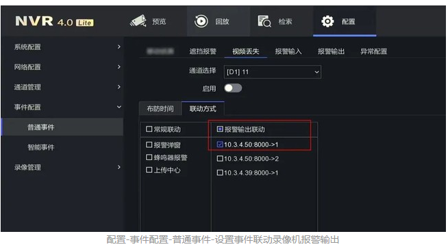 接下來,進入進入錄像機配置-事件配置-普通事件/智能事件,在配置事件功能時,選擇需要聯動的報(bào)警輸出接口,就可以聯動錄像機外接的報(bào)警輸出設備報(bào)警瞭(le)~