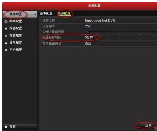 3、海康威視NVR屏幕保護時間設置方法