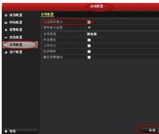 如果要取消這個(gè)提示,進入主菜單(dān)-系統配置,異常配置,将啓用事件提示的鈎取消掉,應用。