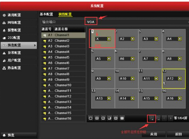 進(jìn)入主菜單(dān)-系統配置-預覽配置-視圖配置-全部開啓預覽