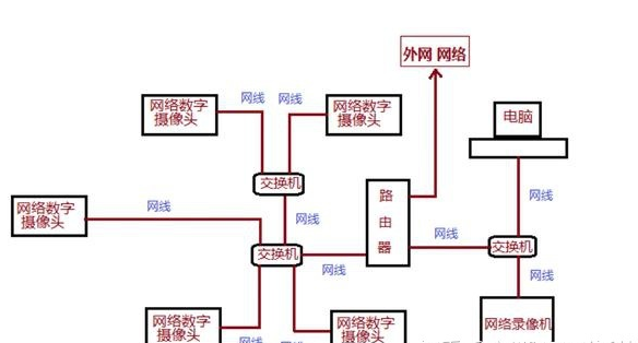 假如你要裝五個攝像頭,你就要從放錄像機和顯示器的地方開始拉各拉一根線到所需要安裝攝像頭的位置,就是說所有攝像頭都要連接到錄像機的位置,每個攝像頭位置必須拉一個電源插座,用來插攝像頭電源适配器。