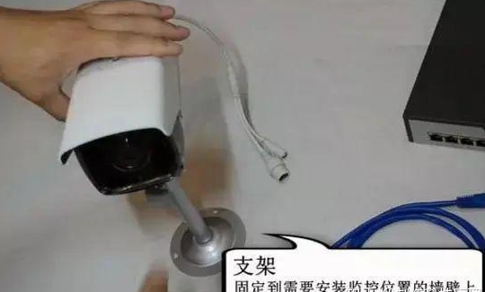 先我們将支架固定到您需要安裝監(jiān)控的位置附近的牆壁上,再将攝像機(jī)固定到支架上。