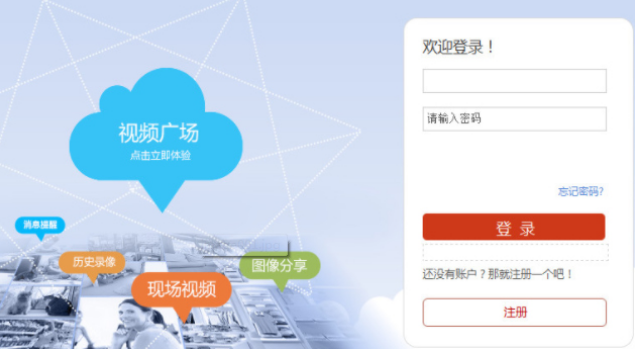 若已有相關螢石雲賬戶,請使用鼠标左鍵單(dān)擊“登陸”,輸入已注冊(cè)的螢石雲服務賬戶、密碼,即可登陸該賬戶,查看該螢石雲賬戶下相關視頻。