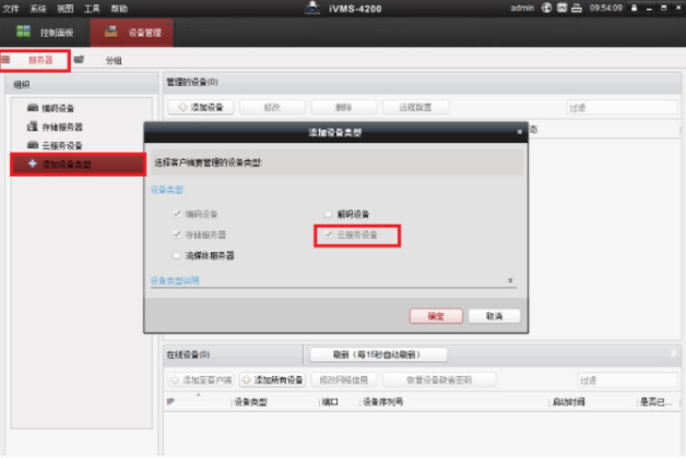 b. 進入“設備(bèi)管理”界面後,選擇“服務器”,使用鼠标左鍵單(dān)擊“添加設備(bèi)類型”,
