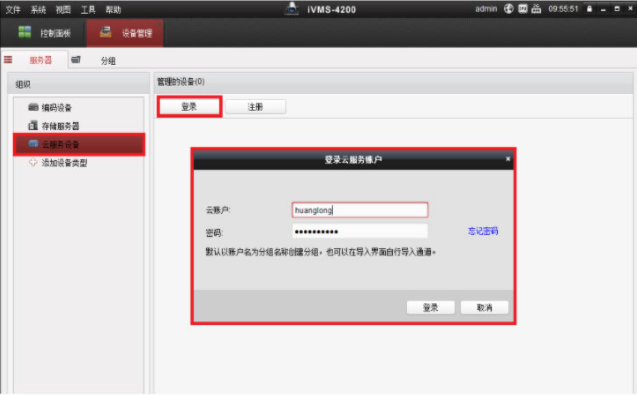 三、用ivms4200登錄(lù)螢石雲賬戶(hù)。