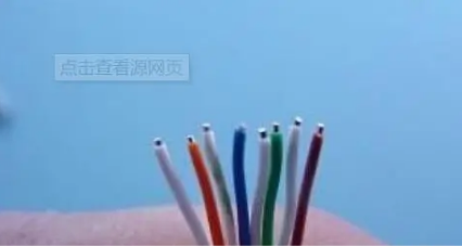 如下圖,網線一共八根線芯,顔色不一樣,網線排列的順序爲 (白橙-橙-白綠-藍-白藍-綠-白棕-棕)。