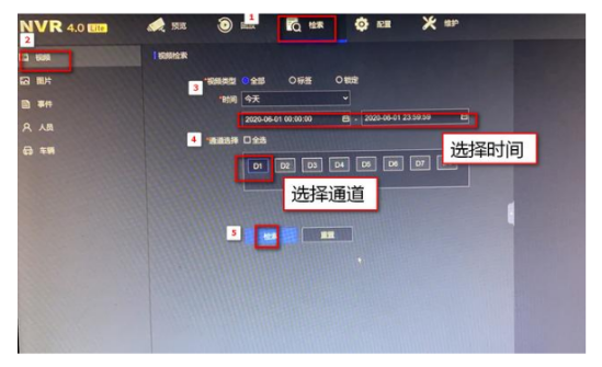 [備(bèi)份] 界面,選擇需要的通道與時間,點(diǎn)擊“搜索”