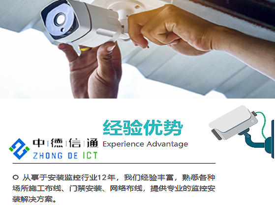 深圳中德科技科技有限公司主要從事:深圳小區監控、工廠監控、别墅監控、寫字樓監控改造、安裝及維修維護攝像頭計算機系統集成、安防監控工程、綜合布線、機房及數據中心建設、智慧城市、智慧園區、多媒體會議系統、智能停車場系統、樓宇對講、樓宇智控、報警系統、公共廣播、智能照明工程、智能家居、弱電智能化工程設計與施工。