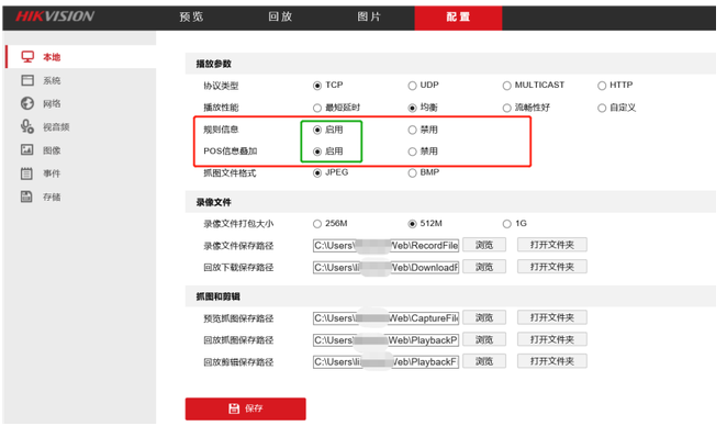 進入配置-本地,将規(guī)則信息及POS信息疊(dié)加開啓。