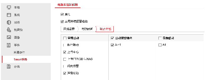 若現場需将IPC檢測(cè)到電瓶車的開關量信号聯動輸出到其他裝置,推薦開啓持續報(bào)警輸出,延時時間配置爲5S。
