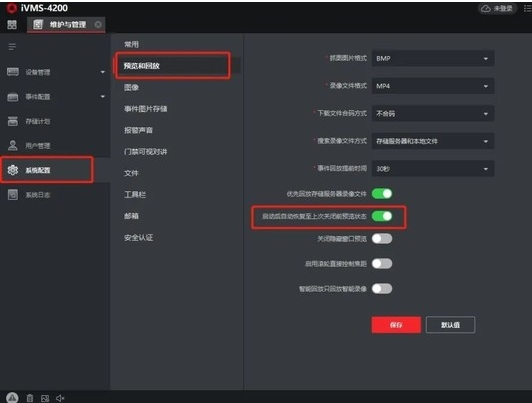 當(dāng)然可以,系統配置-預覽和回放-開啓“啓動後自動恢複至上次關閉(bì)前預覽狀态”,啓動後,每次打開會自動恢複至上次關閉(bì)前預覽狀态。