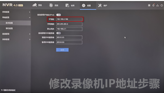 2、“将删除的攝像機斷(duàn)電(diàn)重啓一次“或者“進入配置→網絡配置→基本配置界面,修改錄像機的IPV4地址最後一位。