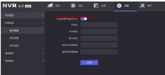 進入錄像機:配置-網絡配置—基本配置,設置設備(bèi)的IP信息,将錄像機的IP地址設置爲跟路由器同網段的IP,子網掩碼(255.255.255.0),默認網關(guān)設置爲路由器IP地址。