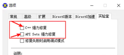 3、c++ 強(qiáng)力修複(fù) 和api sets強(qiáng)力修複(fù)都勾選上;