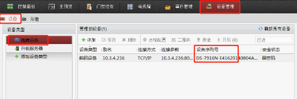 如果不是NB-K系列設備,您可以在4200客戶端 ,點擊設備管理—在線設備,找到該設備,選中設備後點擊激活並設置好密碼,接著再添加即可。
