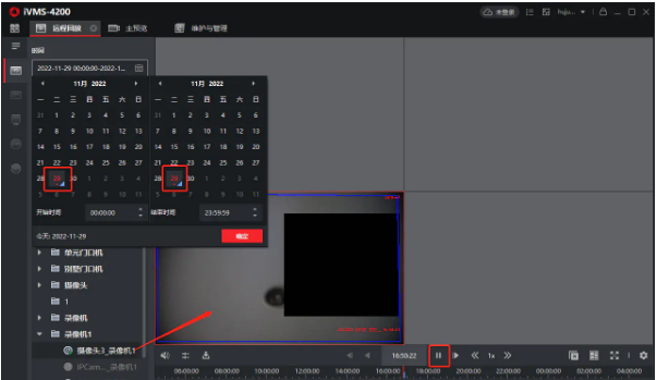 選擇對(duì)應開始時間和結束時間,有錄像的時間(注意:如果時間選的不對(duì),也可能沒有錄像),在日期右上角有藍色角标,将攝像頭拖到右邊(biān)進行回放。