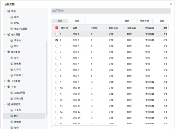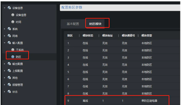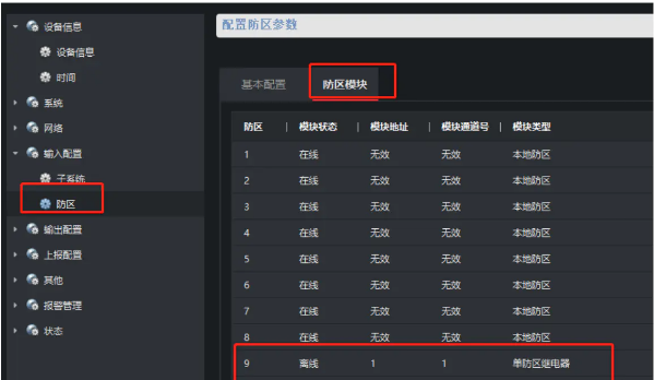 如未處於(yú)故障狀态,檢查該防區是否爲擴展防區,如果是擴展防區檢查該防區的模塊是否在線(輸入配置-防區-防區模塊),離線則檢查模塊接線和撥(bō)碼。