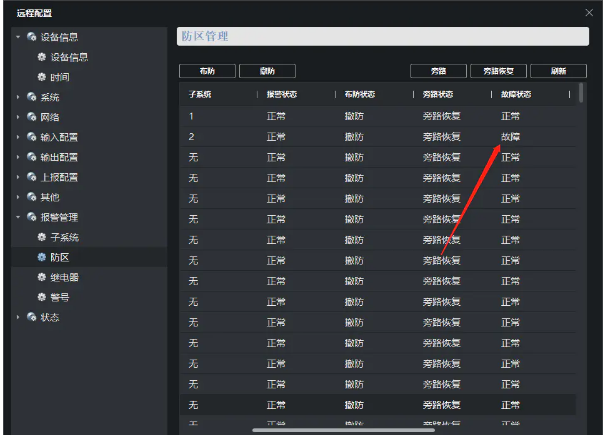 2、布放子系統時,提示1210(防區(qū)不支持該(gāi)操作)