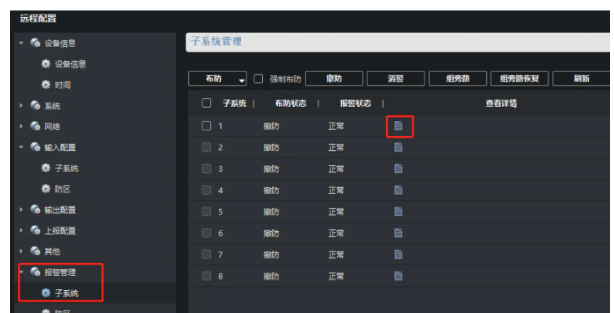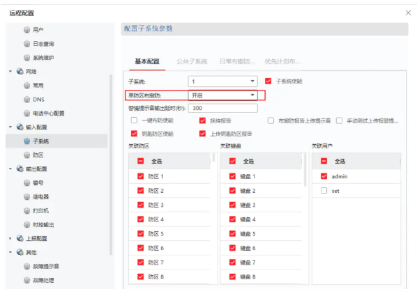 1)、輸入配置-子系統-單(dān)防區布撤防使能打開(kāi)