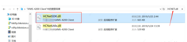 (3)打開4200安裝目錄,右上角搜索“HCNetSDK.dll”,搜索到後(hòu),将新下載的文件,拖進文件夾中,提示是否替換,選擇是,重新打開4200客戶端,添加設備(bèi)進行操作。